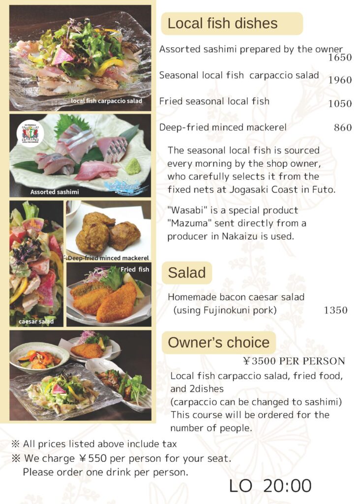 When you come to our restaurant, you should definitely eat local fish and Izu beef!