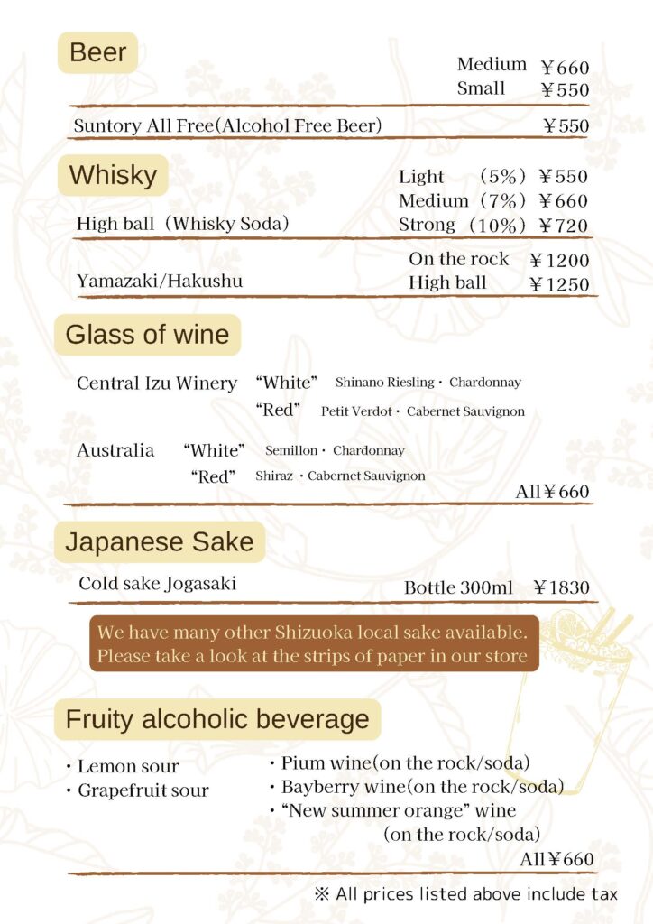 Our establishment cannot provide alcohol to those who will be driving after drinking!! Drinking and driving is a crime! We will report to the police as soon as it is discovered.